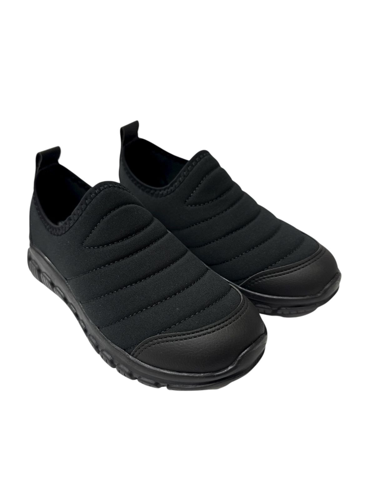 Esse tênis slip-on infantil traz um design todo preto, perfeito para combinar com qualquer look, seja para a escola, passeios ou brincadeiras. O cabedal macio oferece ajuste confortável e o solado antiderrapante garante segurança a cada passo.