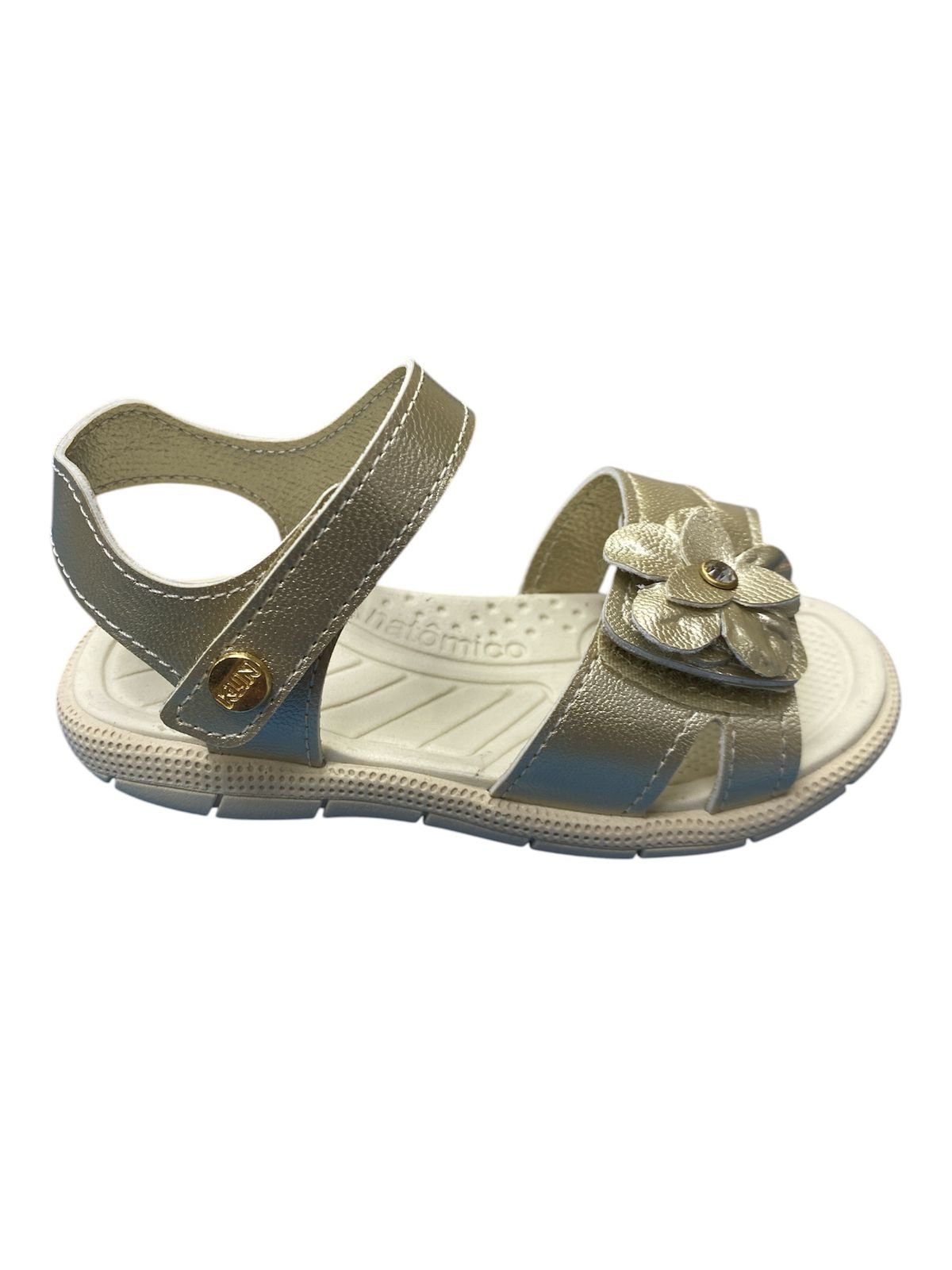 A sandália Klin é perfeita para acompanhar os primeiros passos, trazendo design moderno, cor dourada versátil e detalhe delicado em formato de flor. Produzida com materiais de alta qualidade, oferece palmilha macia e solado antiderrapante, garantindo estabilidade e bem-estar durante todo o dia.
