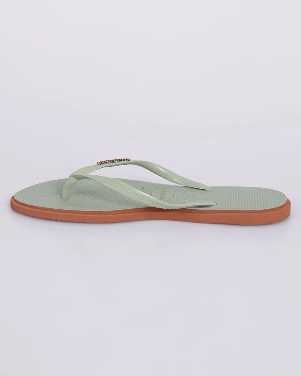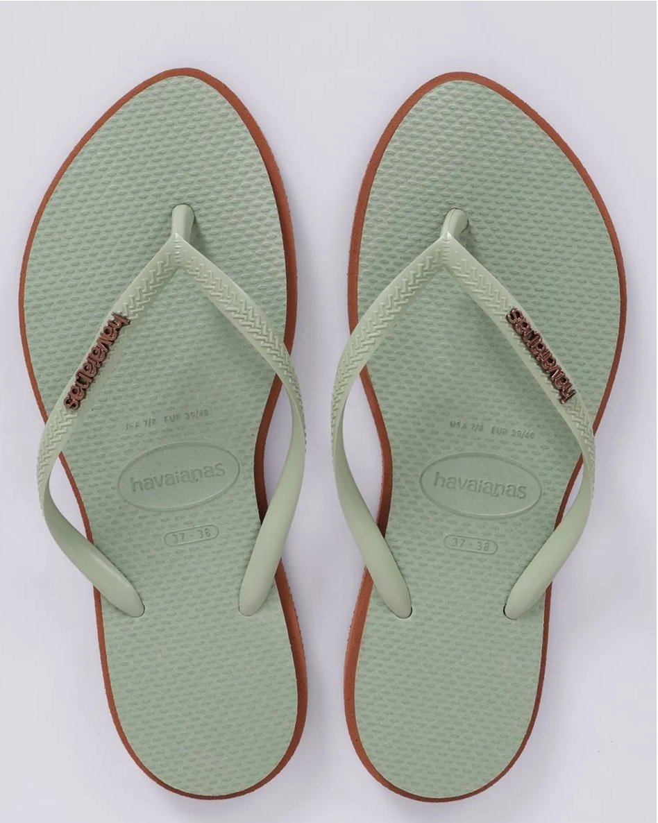 A nova Havaianas Slim Point tem tudo para ser sucesso! O destaque desse chinelo é o bico levemente pontudo, que é a nova tendência, dá todo um diferencial para os pés. Além disso, tem bordas e laterais em cores que contrastam com os tons pastel da sola e das tiras finas com logo metálico, criando um efeito moderno-colorido.